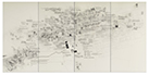 This drawing depicts the geographical layout of Vancouver's Downtown Eastside, with Hastings Street running diagonally from centre left to top right and Main Street cutting centre, top to bottom. On it are mapped all of the Single Room Occupancy Hotels (SROs) and the supportive housing in the area, as well as newly planned market-rate units. The drawing details rent prices and charts the rise of Canadian home prices. It documents the impact of Expo ’86 and the 2010 Olympics, the sale of the Expo lands and the new development Northeast False Creek. It maps gentrification, the location of the high-end restaurants moving into the area. It records and reports facts and statics on the deinstitutionalization of Vancouver's mental health facilities, the drug poisoning crisis, homelessness, and the survival sex trade.