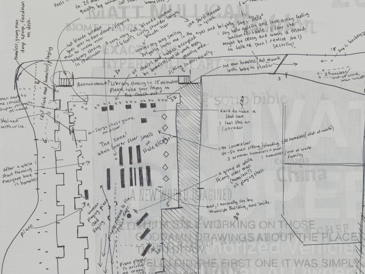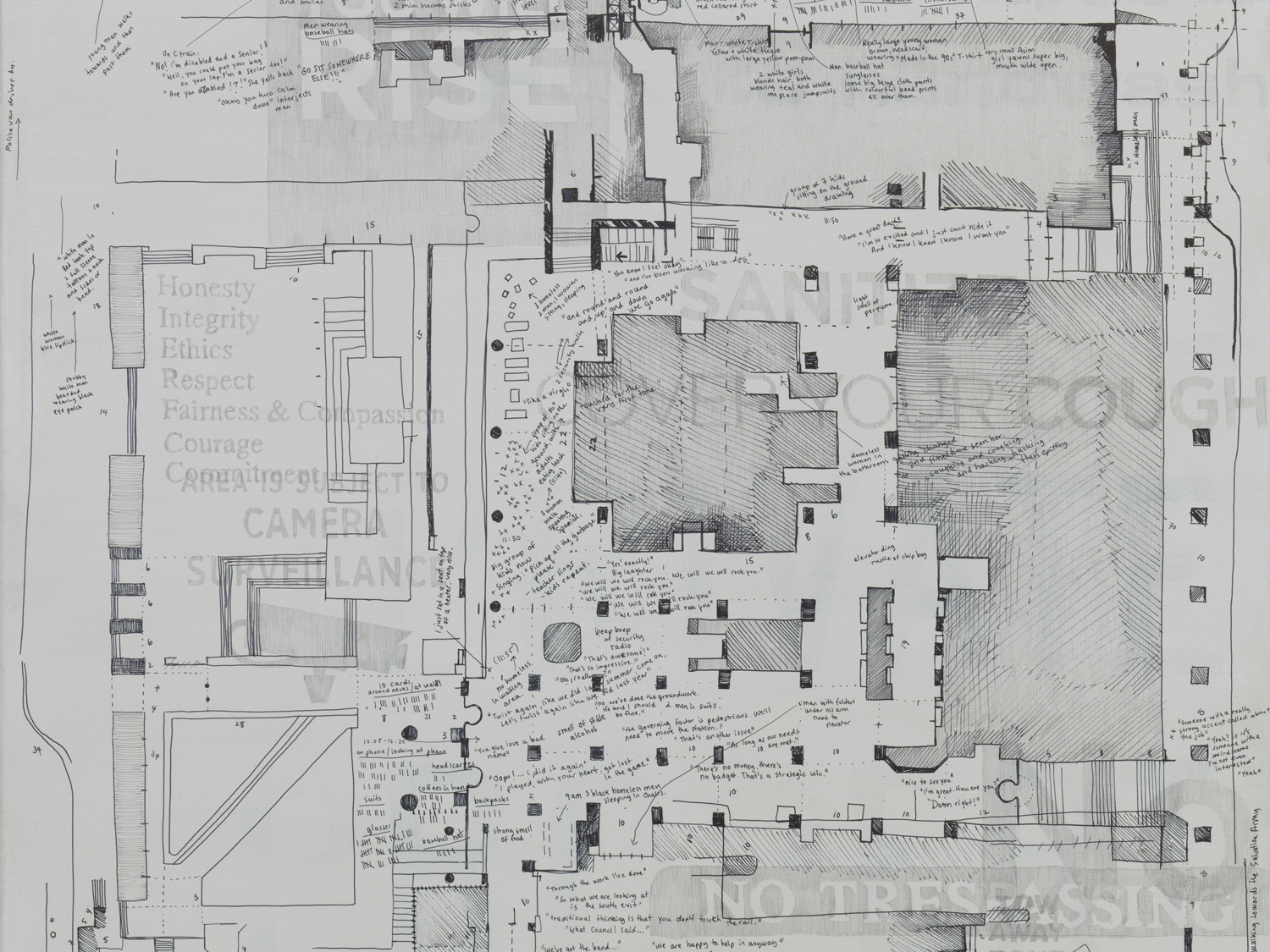 CIVIC. CENTRE. I, II, III examines a four-block area on the eastern edge of Calgary’s downtown core, from the Municipal Building to the northern edge of the YWCA. Positioned between the city’s financial centre and the East Village, this zone is defined by layered public, semi-public and private spaces. The work engages with an urban landscape shaped by job loss, poverty, gentrification, displacement and redevelopment.