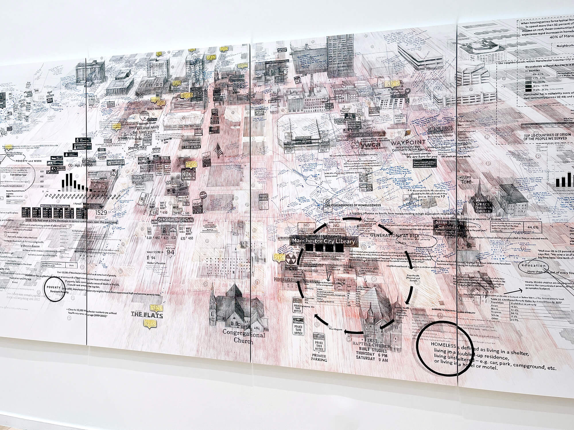 Manchester, NH, USA I, 2020 (left, work by Isabelle Hayeur)