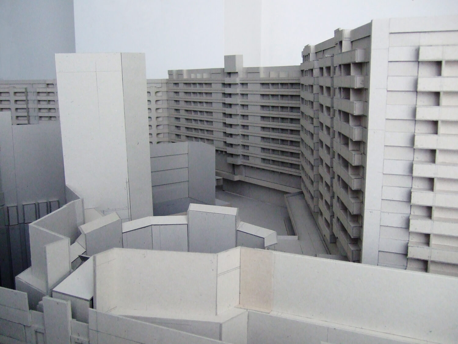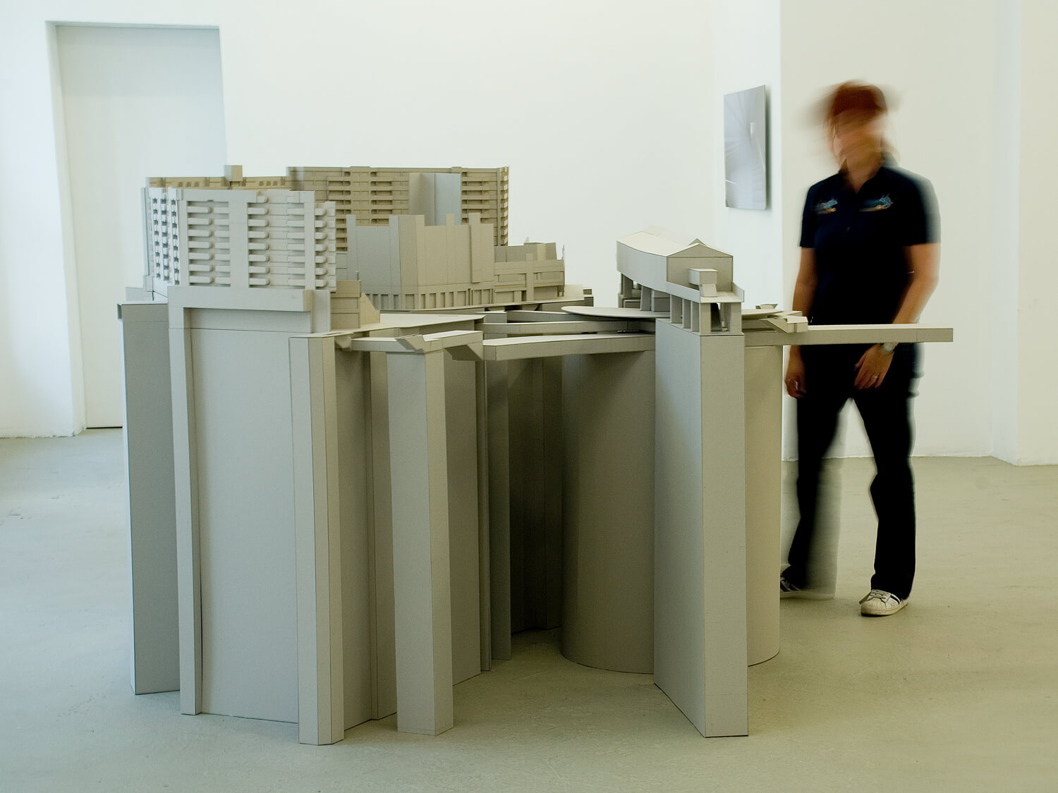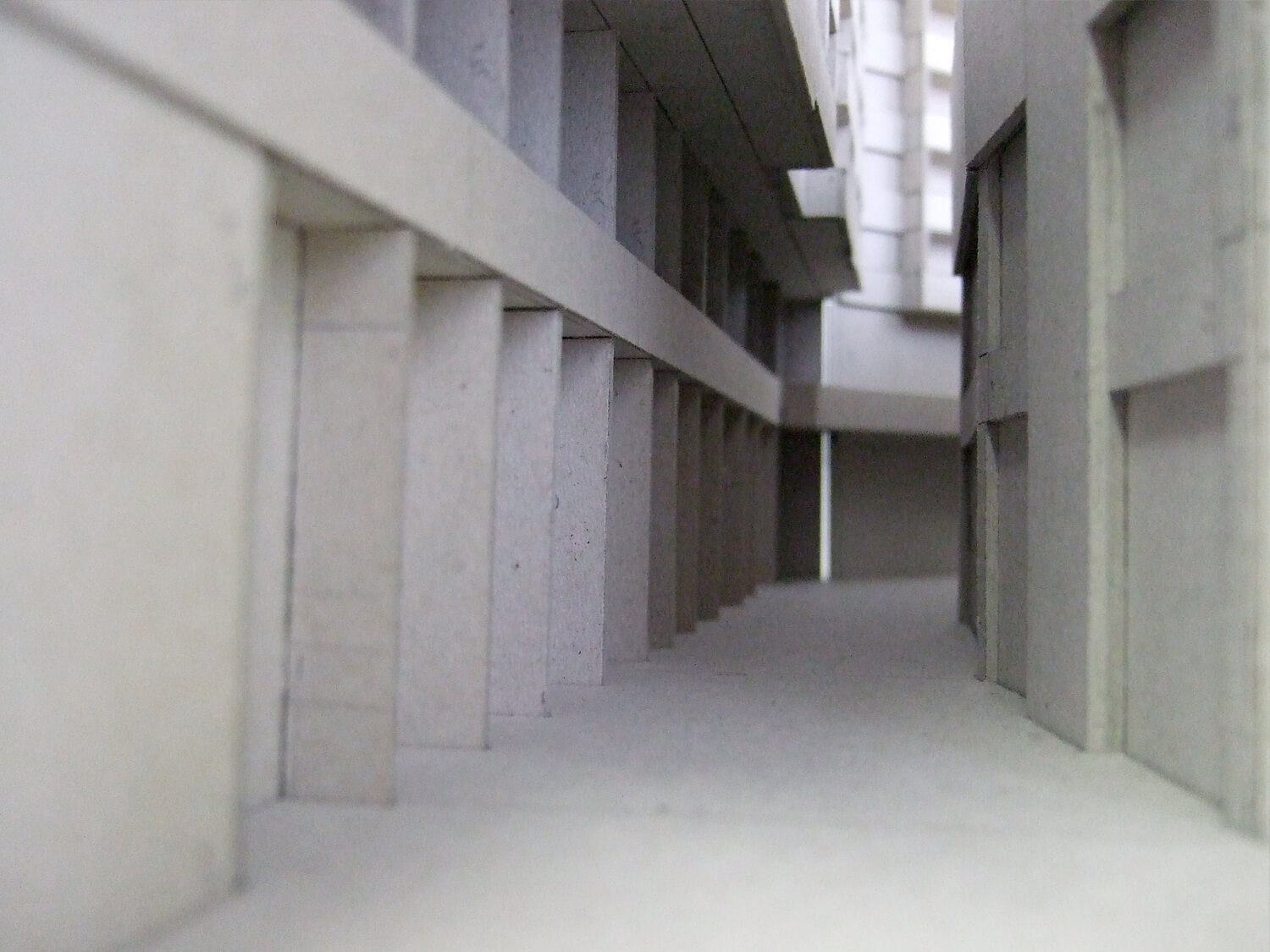 Here the publicly accessible areas of the Neue Kreuzberger Zentrum housing estate in Berlin are reconstructed. Private spaces and the roads themselves are left as empty shafts.