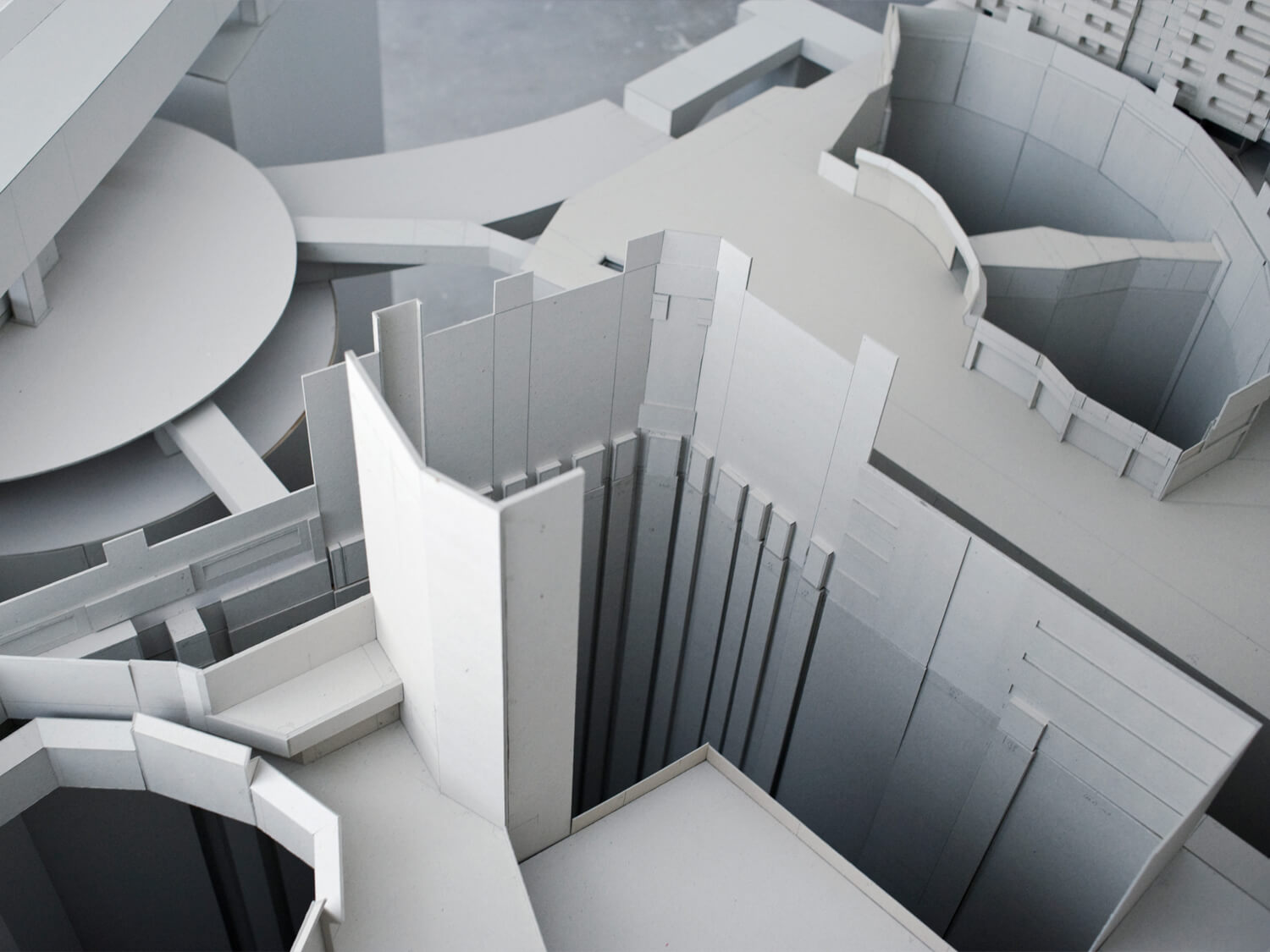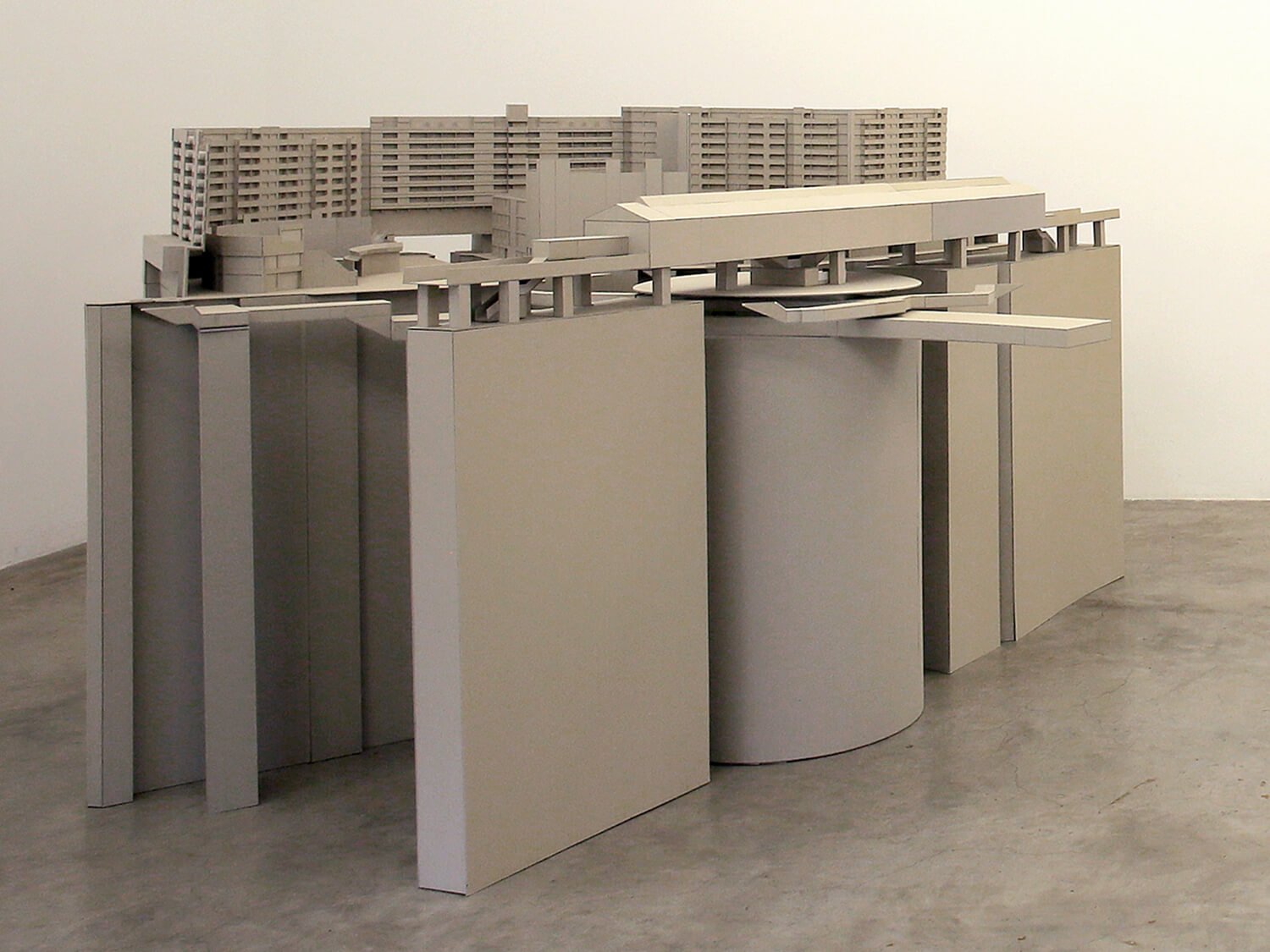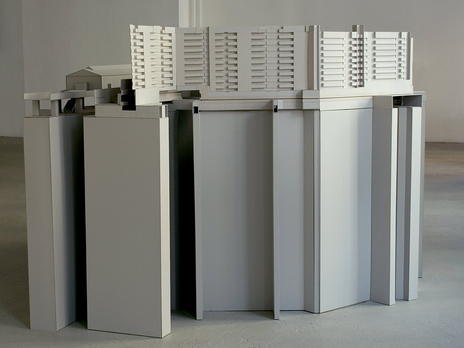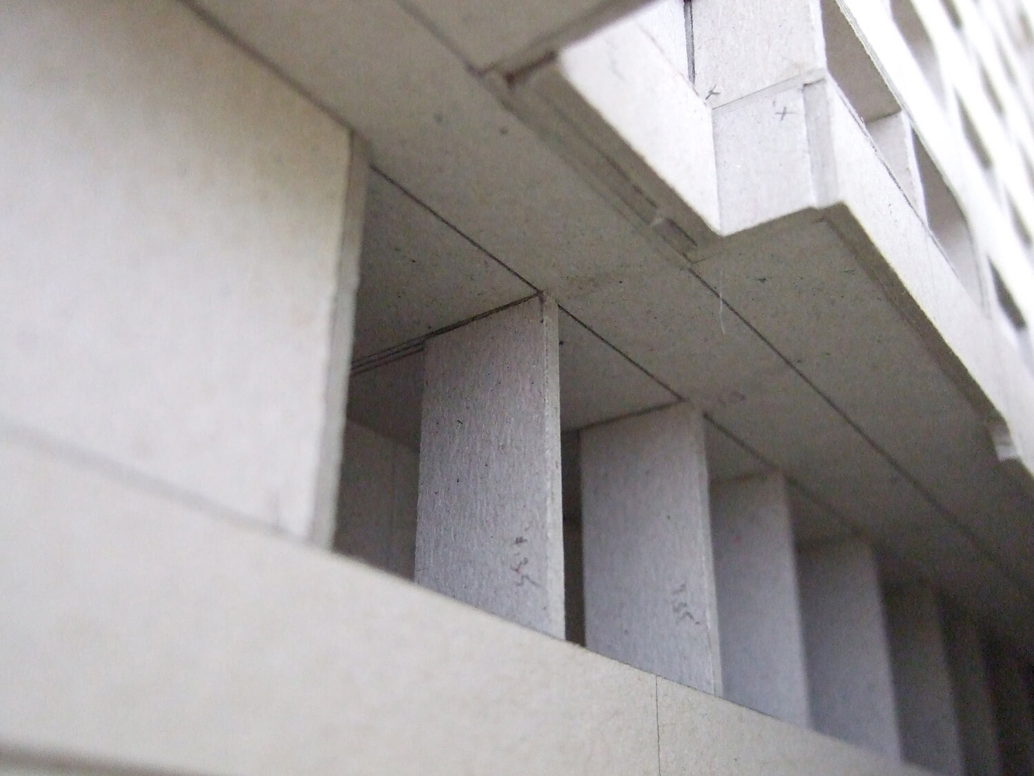 Here the publicly accessible areas of the Neue Kreuzberger Zentrum housing estate in Berlin are reconstructed. Private spaces and the roads themselves are left as empty shafts.